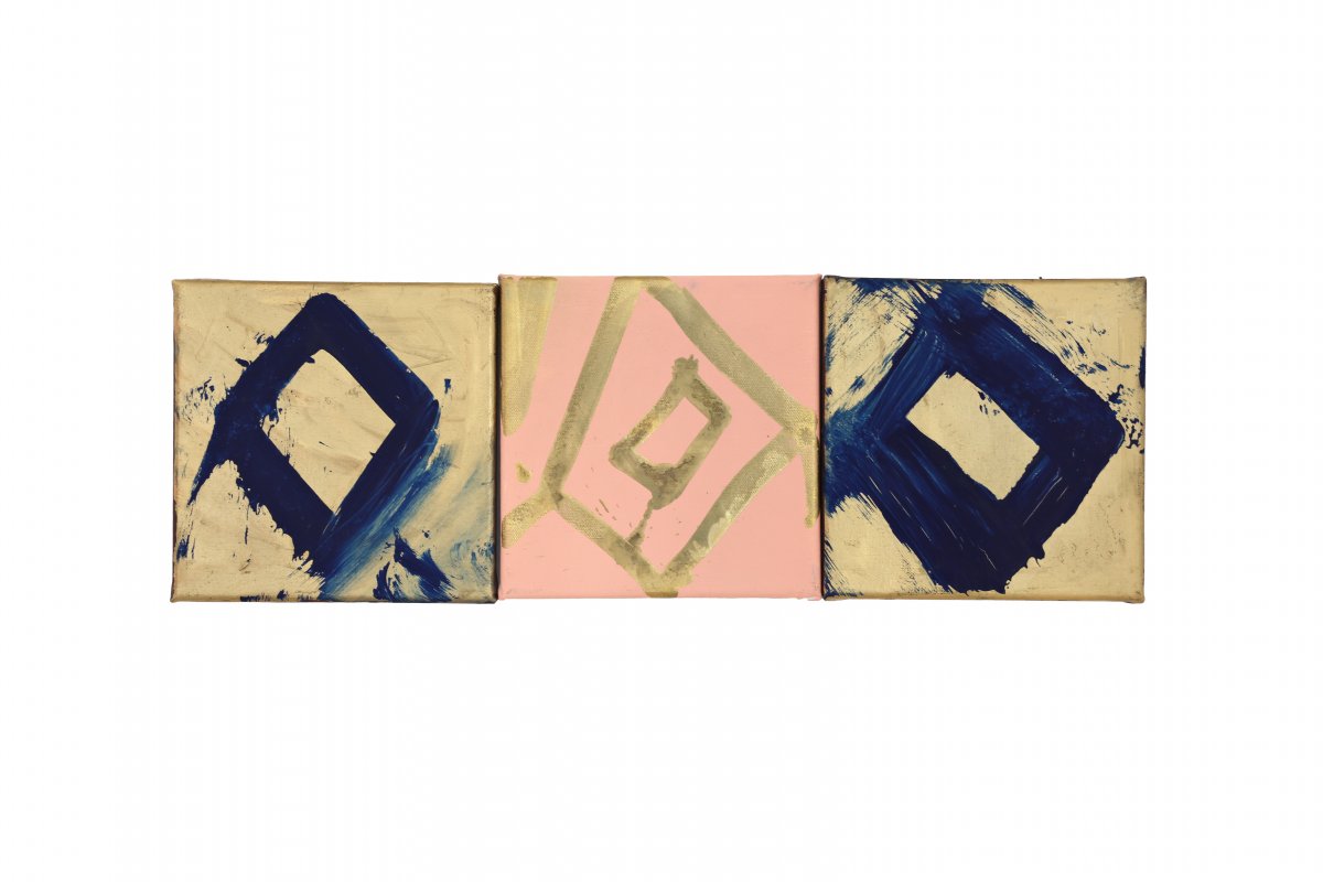 Pink and blue moments 15x45 cm 2023, acrylic and oil on canvas